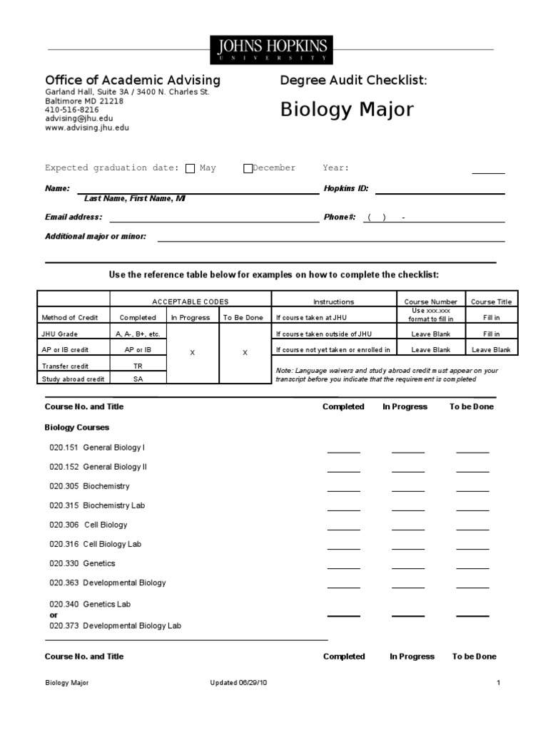 Degree requirements Undergraduate Catalog Biological Sciences Major