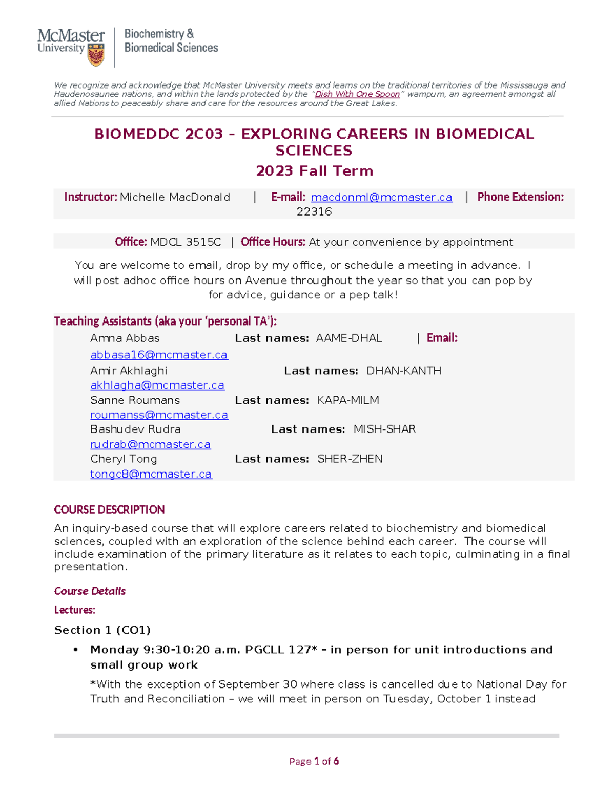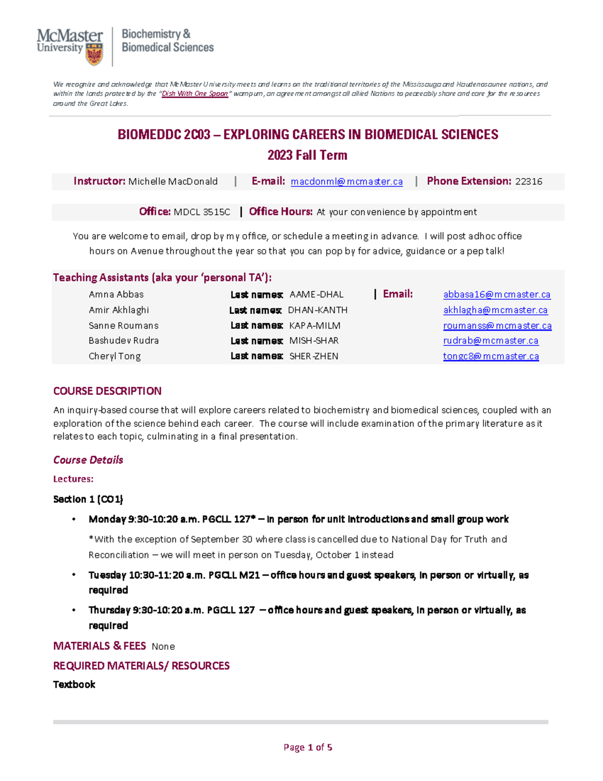 Biomeddc 2C03 Exploring Careers in Biomedical Sciences Course