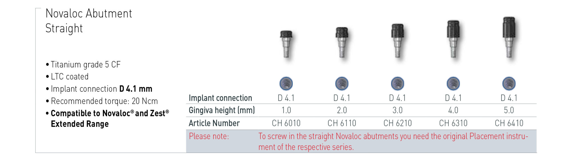 Novaloc Abutment Straight BIOMET 3i Certain CH Abutment Direct