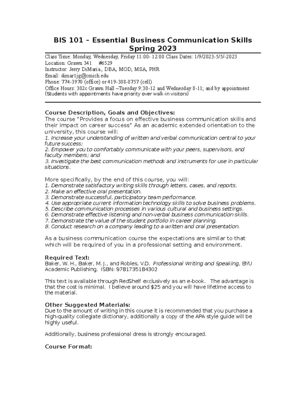 BIS 101 s23 mwf 11 mike lents BIS 101 Essential Business