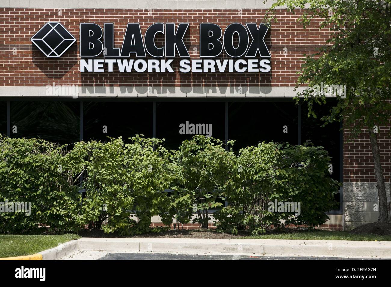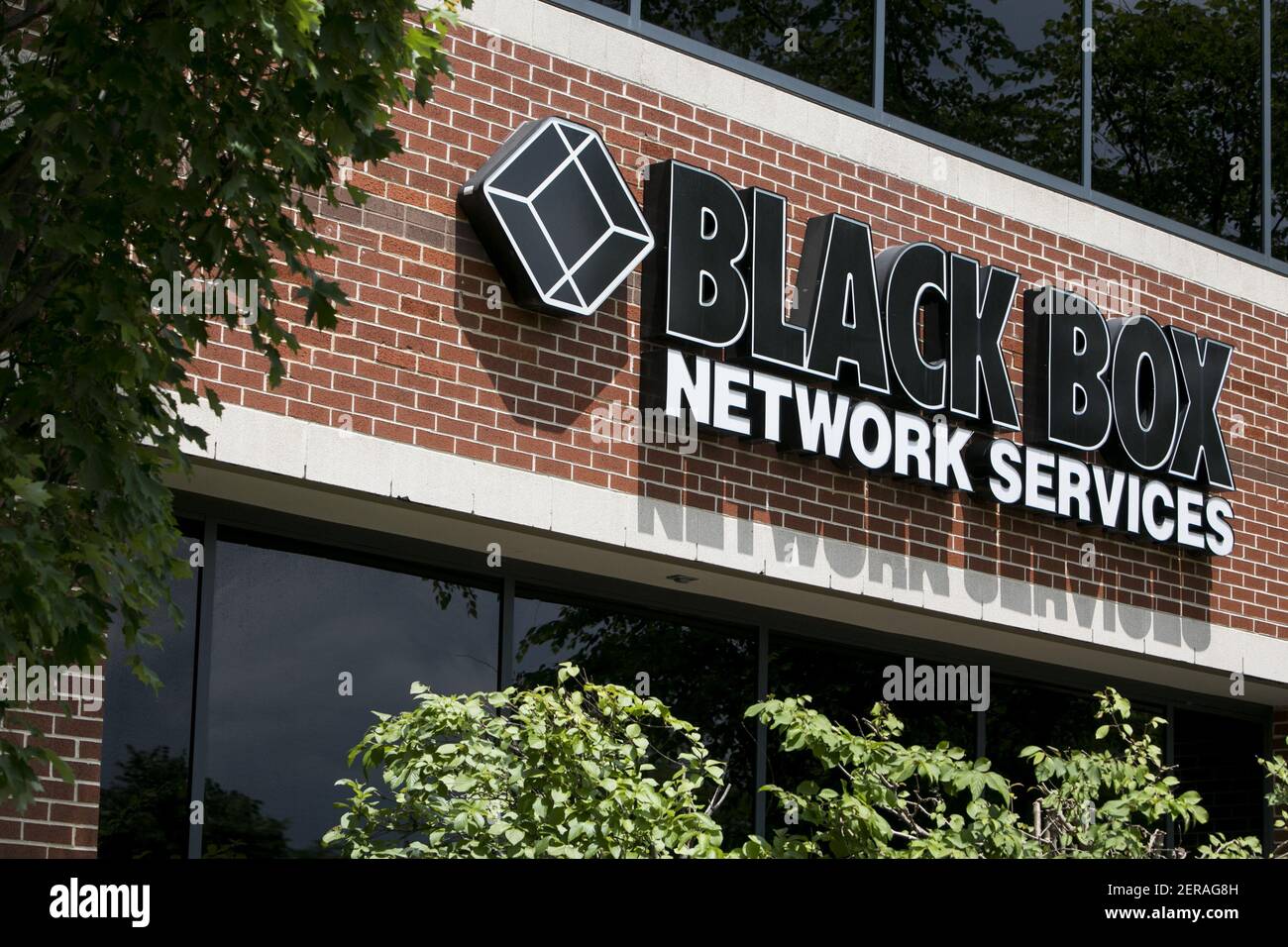 A logo sign outside of a facility occupied by Black Box Network