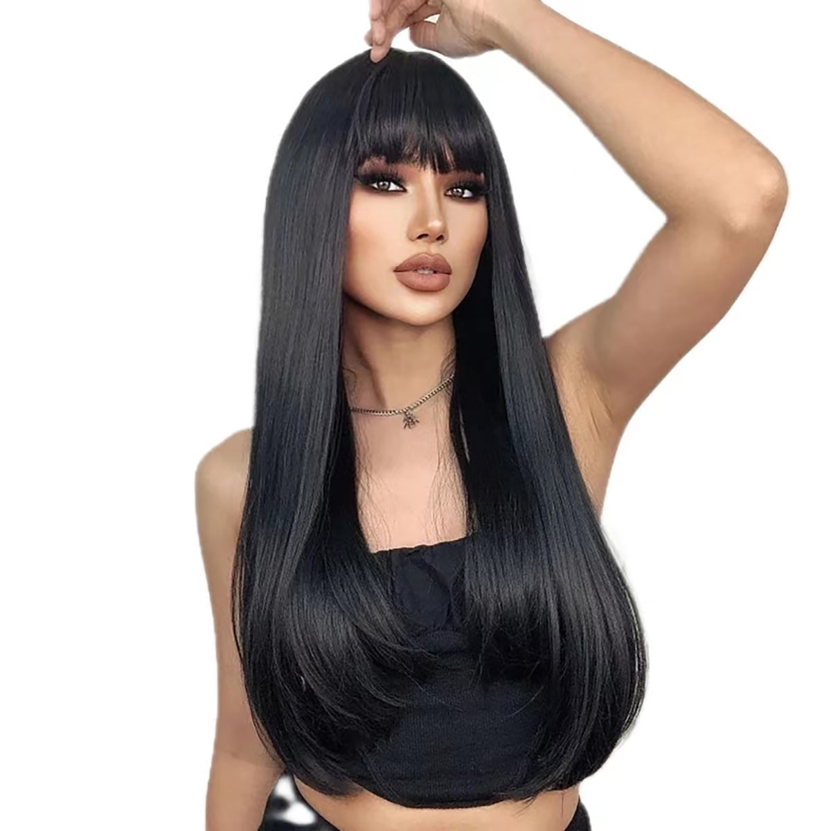 TuTive Black Wigs for Women 22 Inch Layered Wig With Bangs