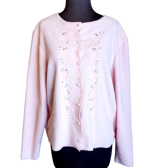 Blair Sweaters Vintage Blair Floral Embroidered Button Up Sweater