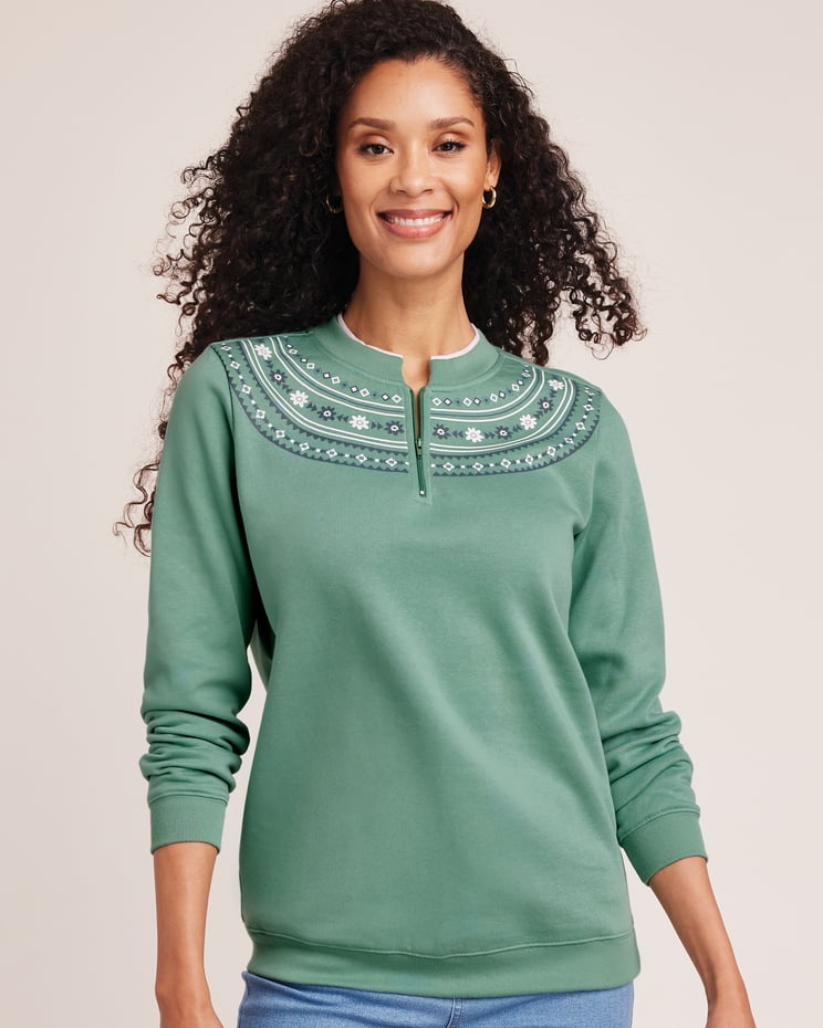 Blair Haband Women’S Embroidered Fleece Sweatshirt