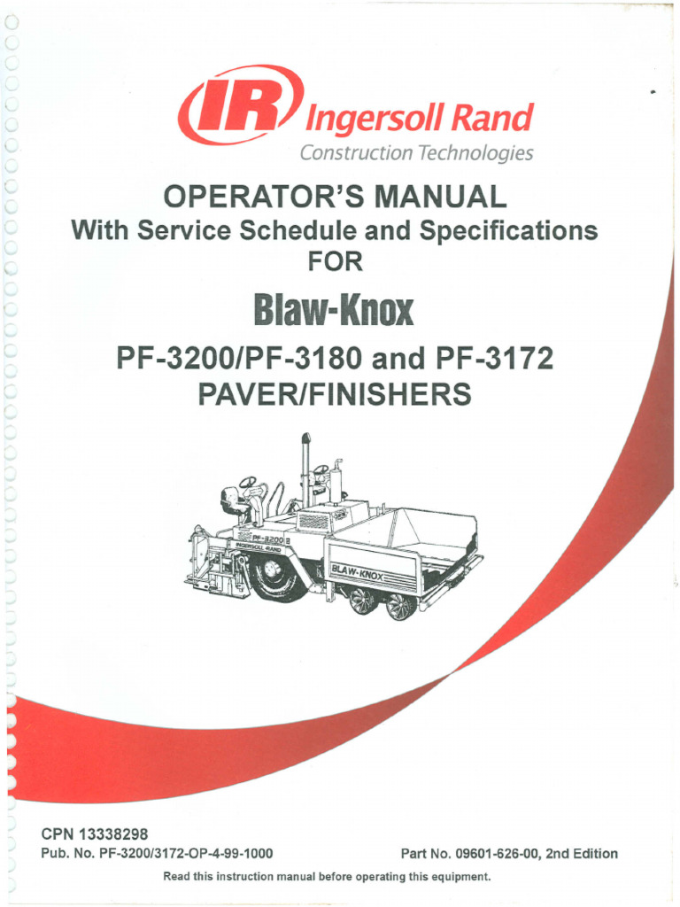 IngersollRand BlawKnox PF3172PF5510 Operators Parts Service Manual