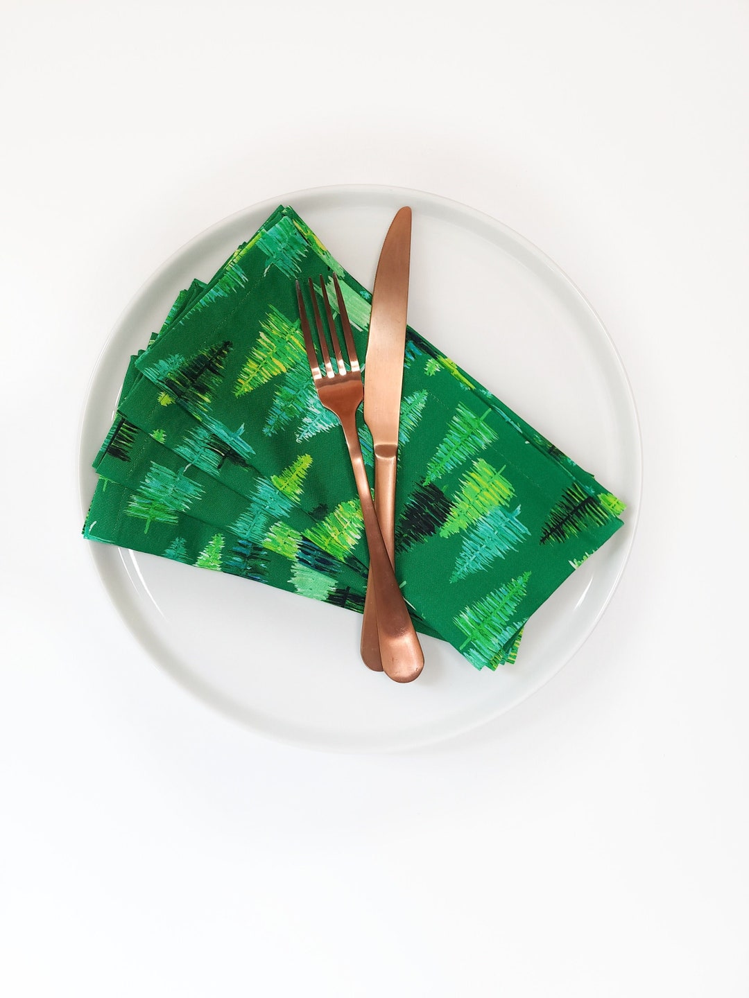 Modern Green Christmas Napkins, Colorful Christmas Tree Cloth Napkins