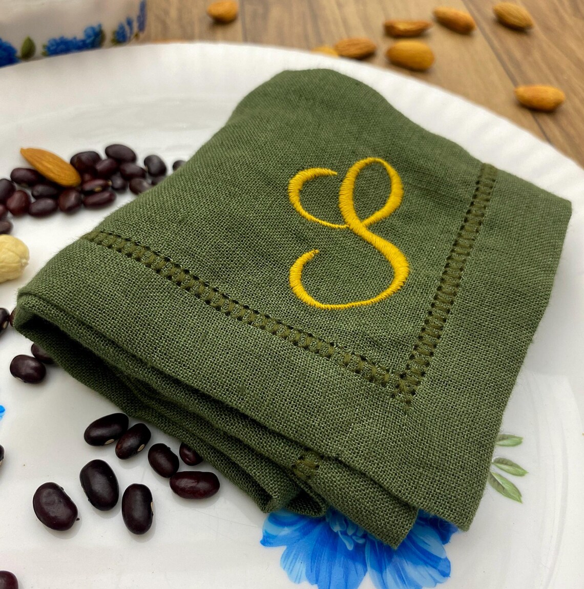 Embroidered Monogrammed Christmas Table Napkins Moss Green Christmas