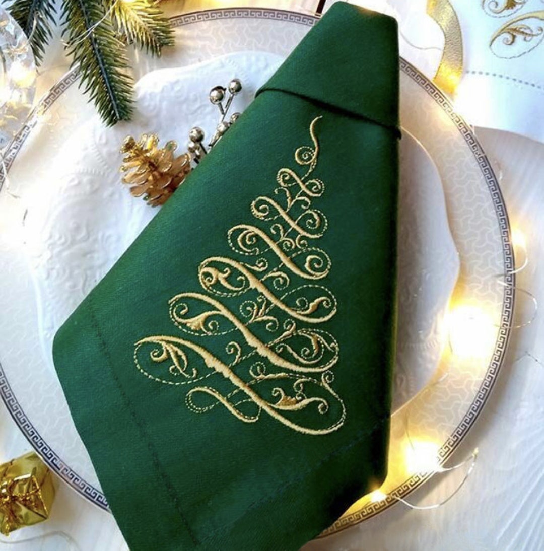 Embroidered Chinoiserie Christmas Tree Linen Napkins Perfect