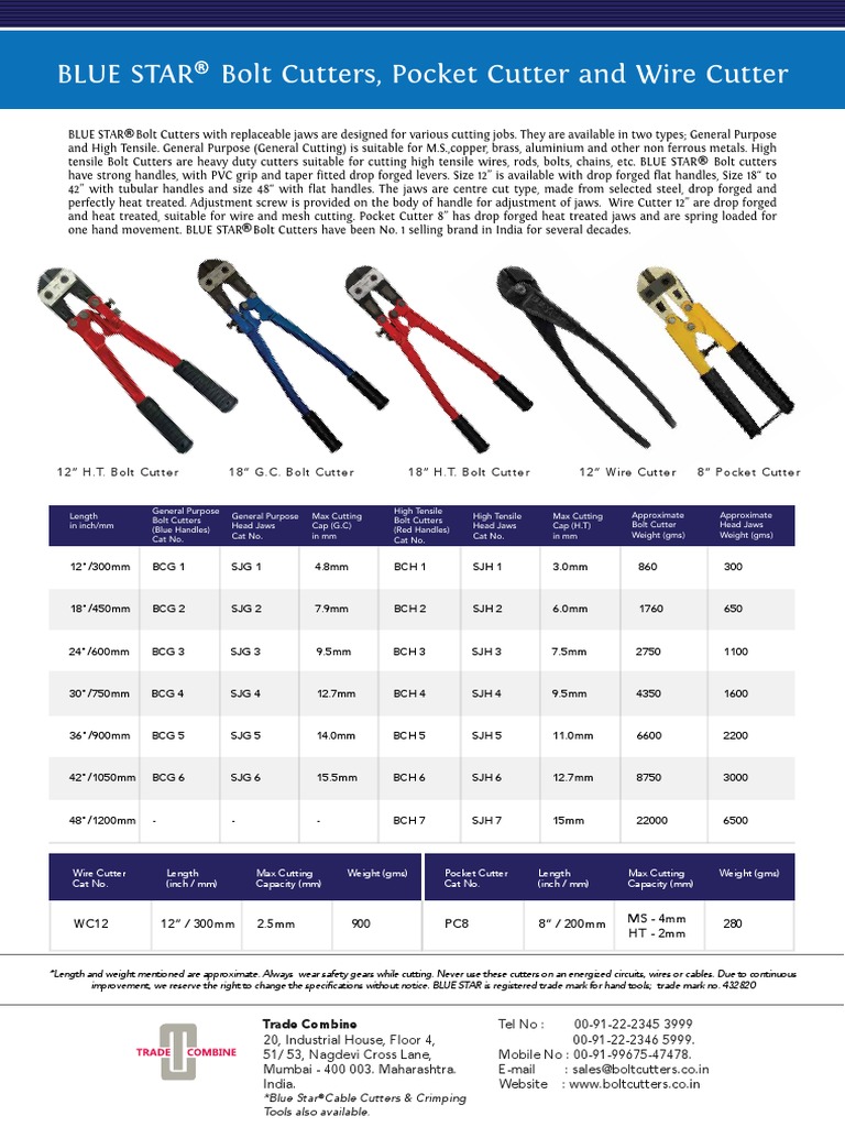 Blue Star Bolt Cutters Catalogue PDF Screw