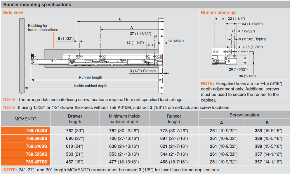 Blum MOVENTO 769 BLUMOTION Undermount Slide Soft Close, 21"L, Full