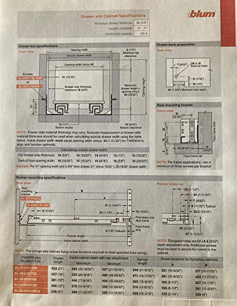 blum bundle 12 blum tandem drawer slides with blumotion. includes