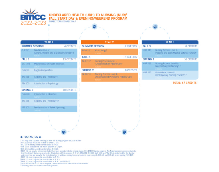 BMCC Nursing Program Course GuideTimeline PDF Nursing Health Care
