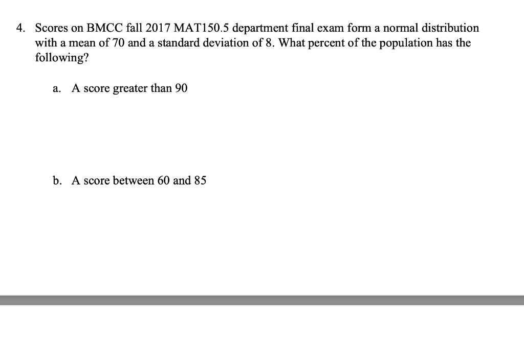 Solved 4. Scores on BMCC fall 2017 MAT150.5 department final