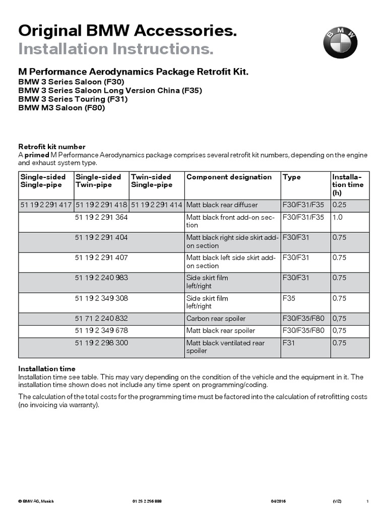 BMW 3 SERIES F30 MPERFORMANCE KIT