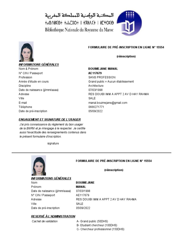 Formulaire BNRM PDF