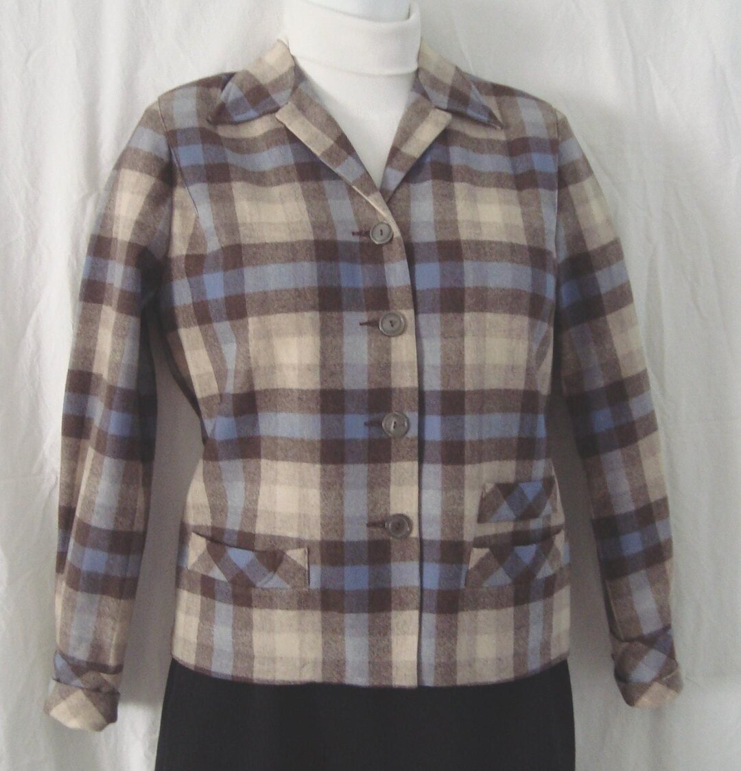 Vintage 1950's Women's BOBBIE BROOKS calgary Wool Blend Plaid Jacket
