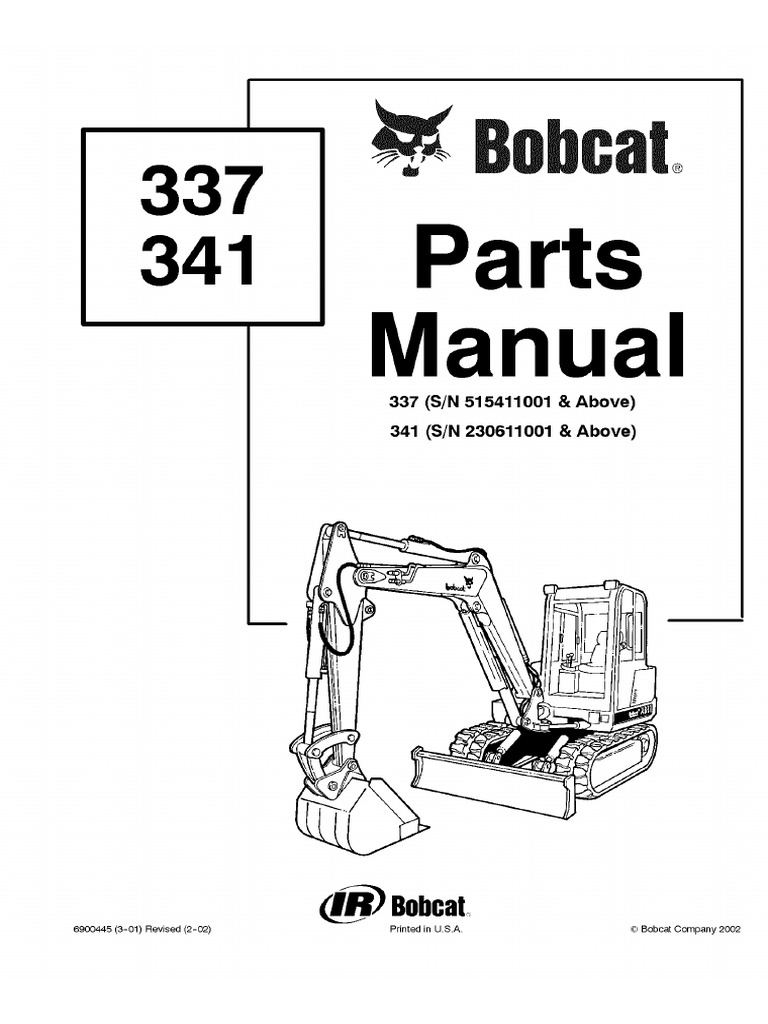 Bobcat 337 Excavator Parts Catalogue Manual SN 515411001 and Above PDF