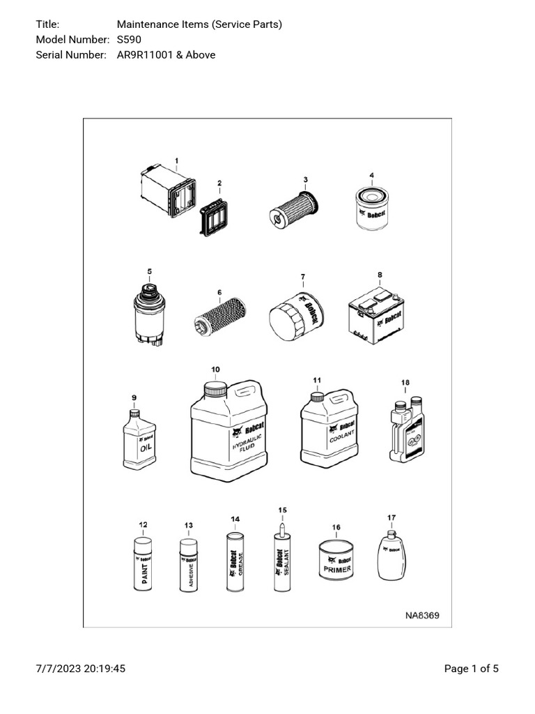 Bobcat Online Parts Catalog Maintenance Items (Service Parts) S590