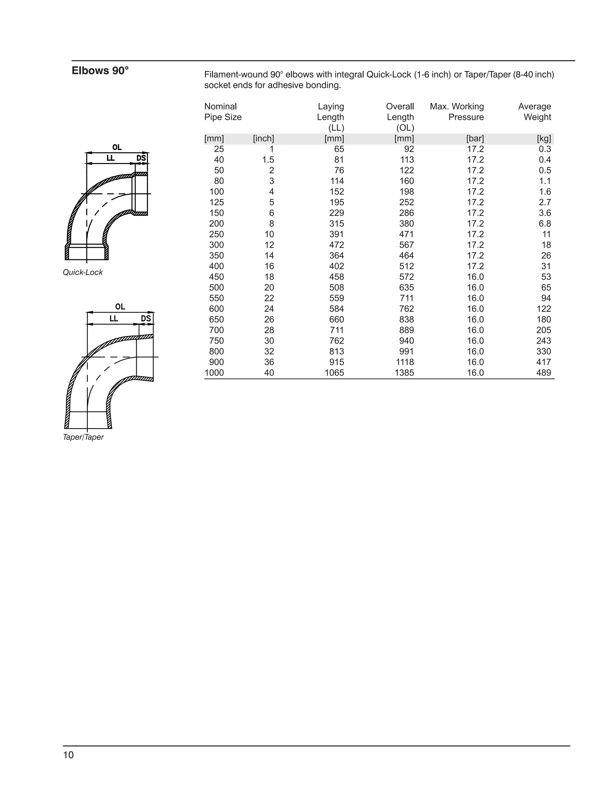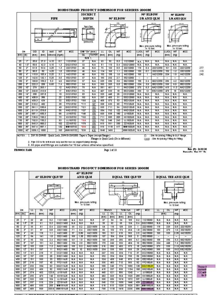 Bondstrand Product Dimension For Serires 2000M Sockect 90° ELBOW Pipe