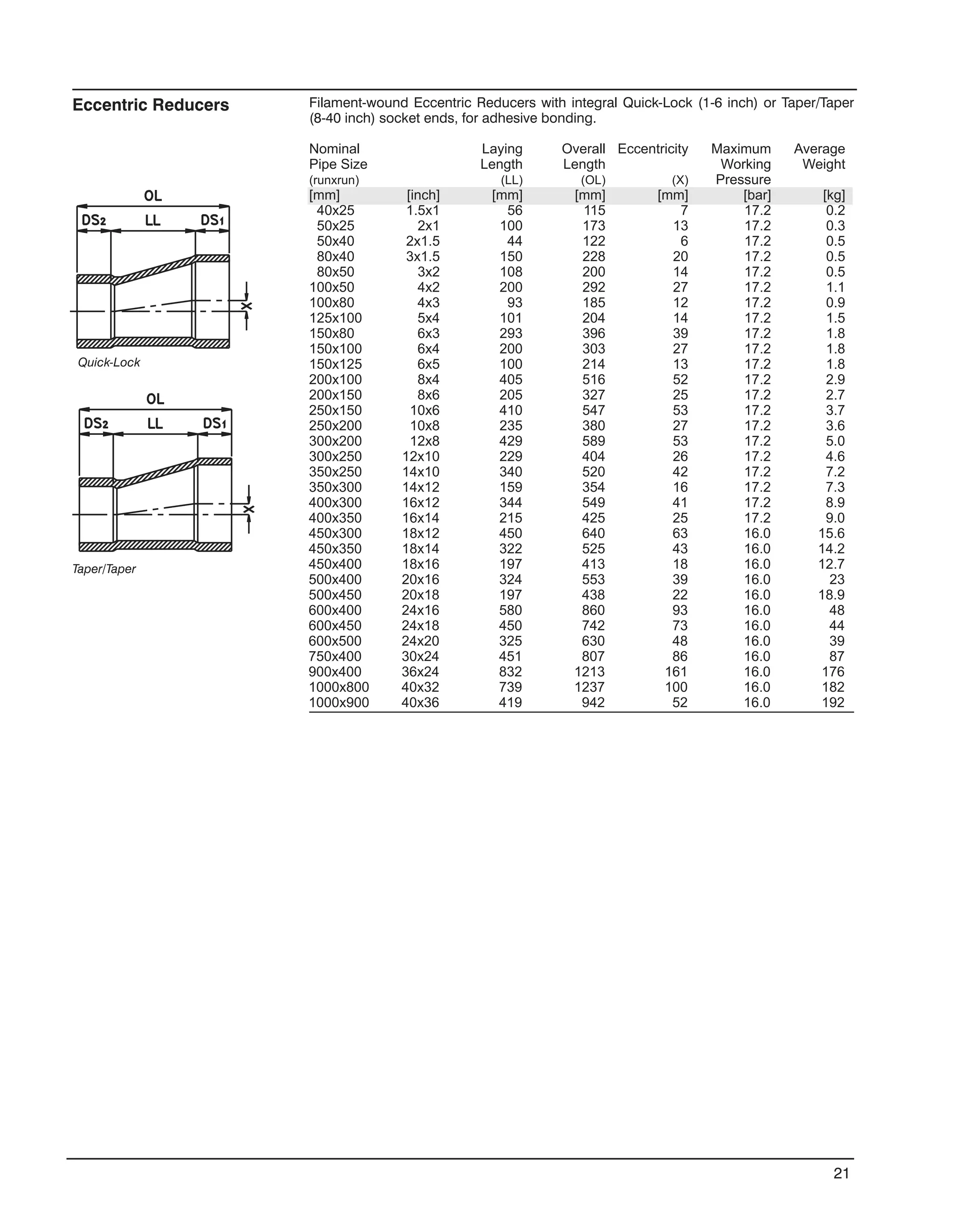 Bondstrand Product Dimension Series 2425 PIPE (Taper Joint Data