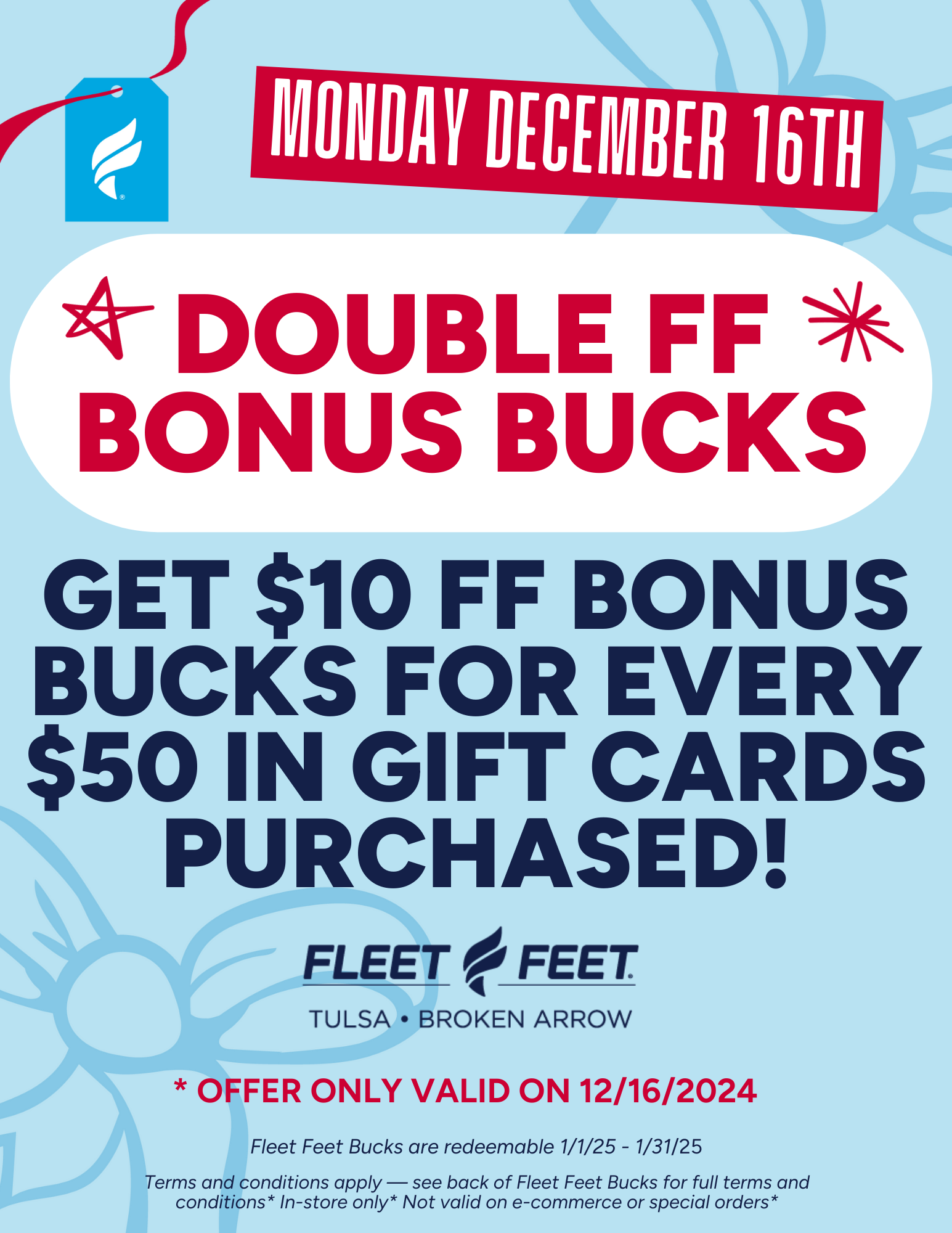 Monday 12/16 Only Raffle & Double Bonus Bucks Fleet Feet Tulsa