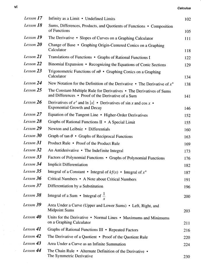 SAXON CALCULUS PACKET Second Harvest Curriculum