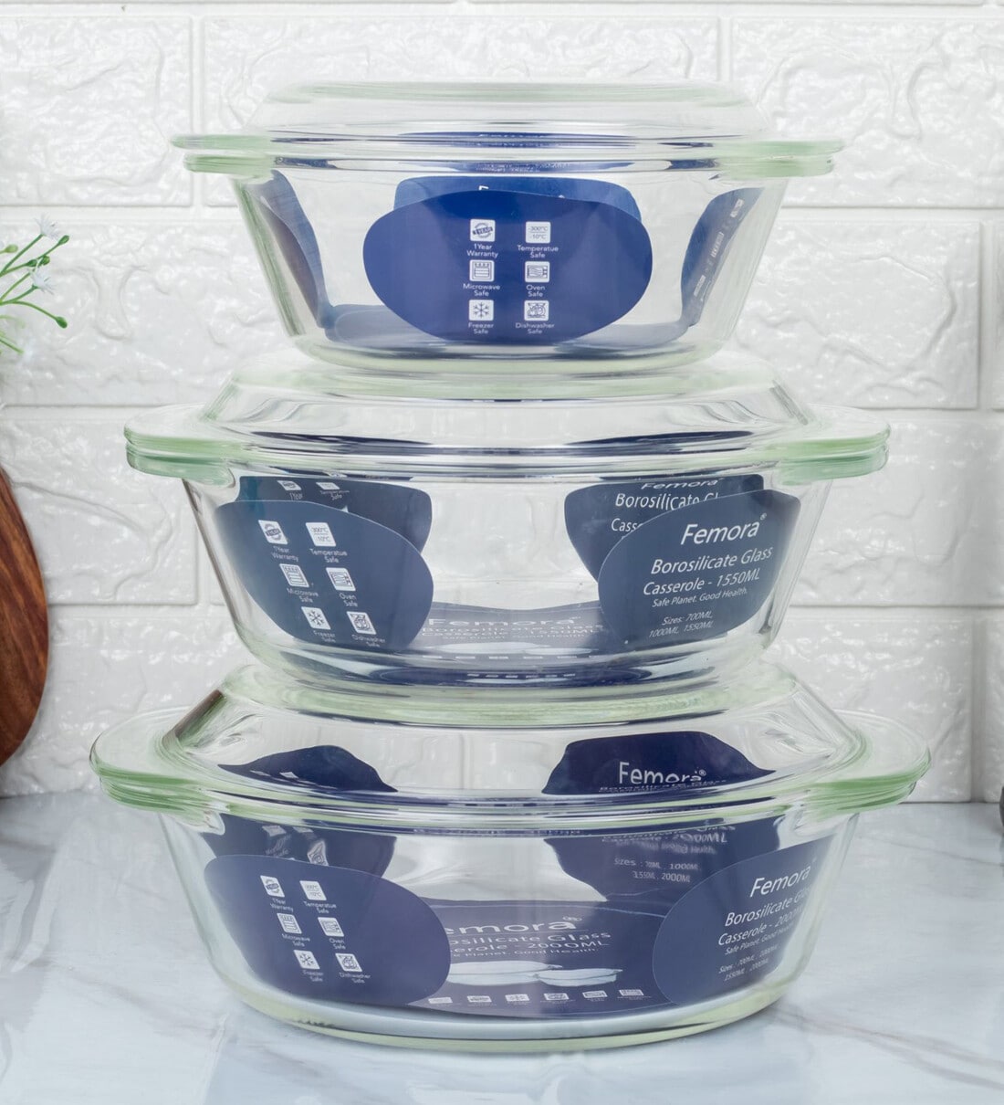 Buy Multipurpose Borosilicate Glass Casserole (Set of 3) by Femora at