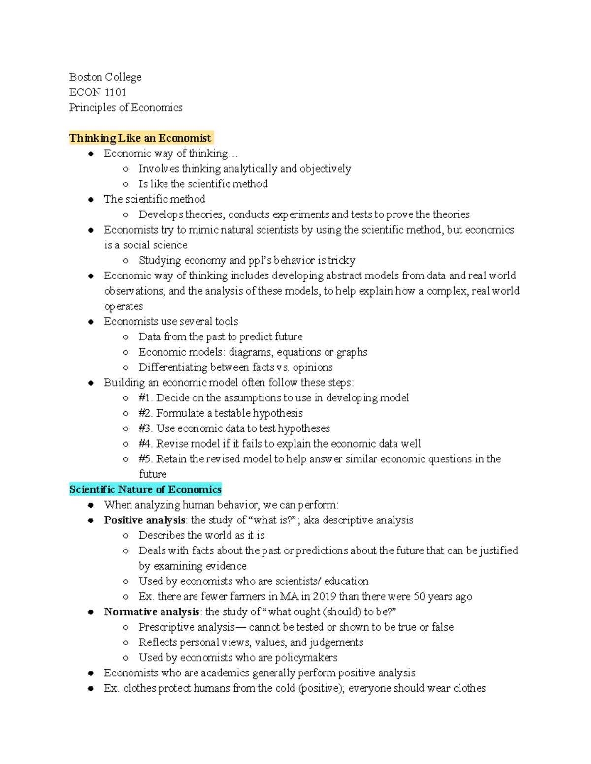 Ch2 Thinking Like an Economist Boston College ECON 1101 Principles of