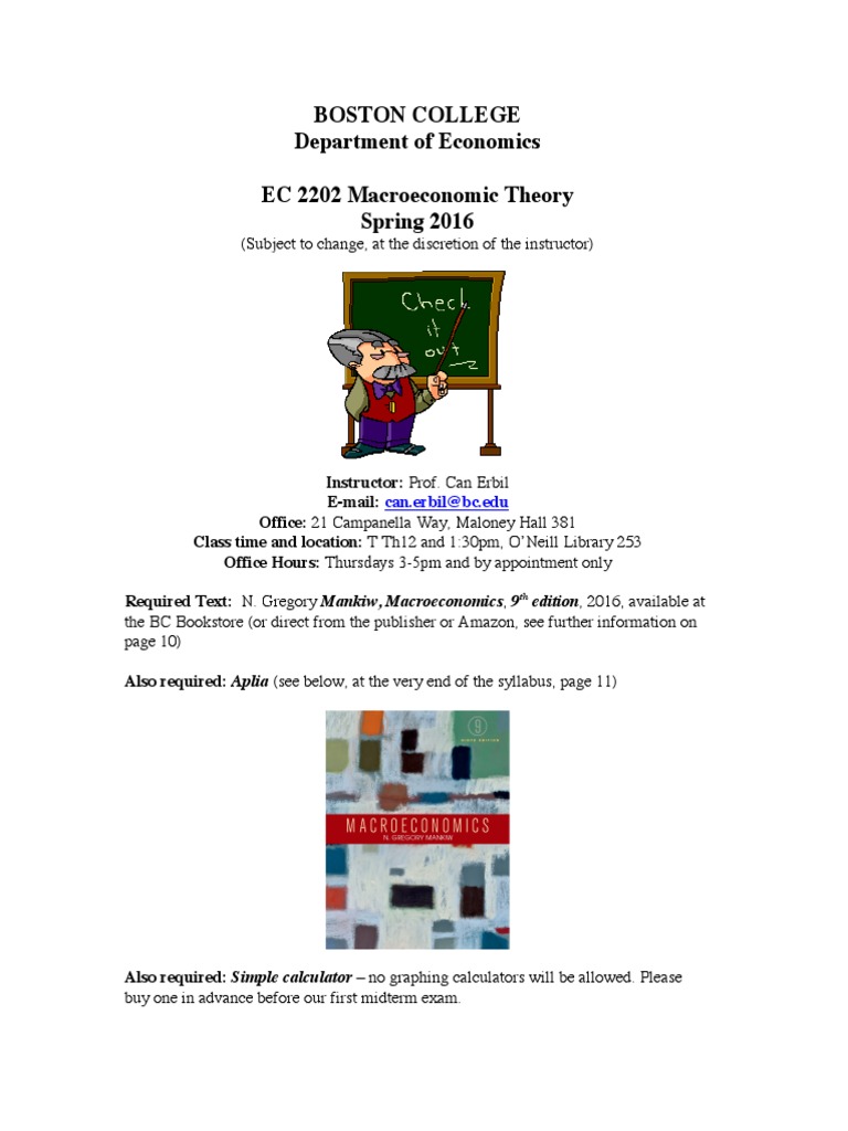 Macroeconomics at Boston College An Overview of Professor Erbil's EC