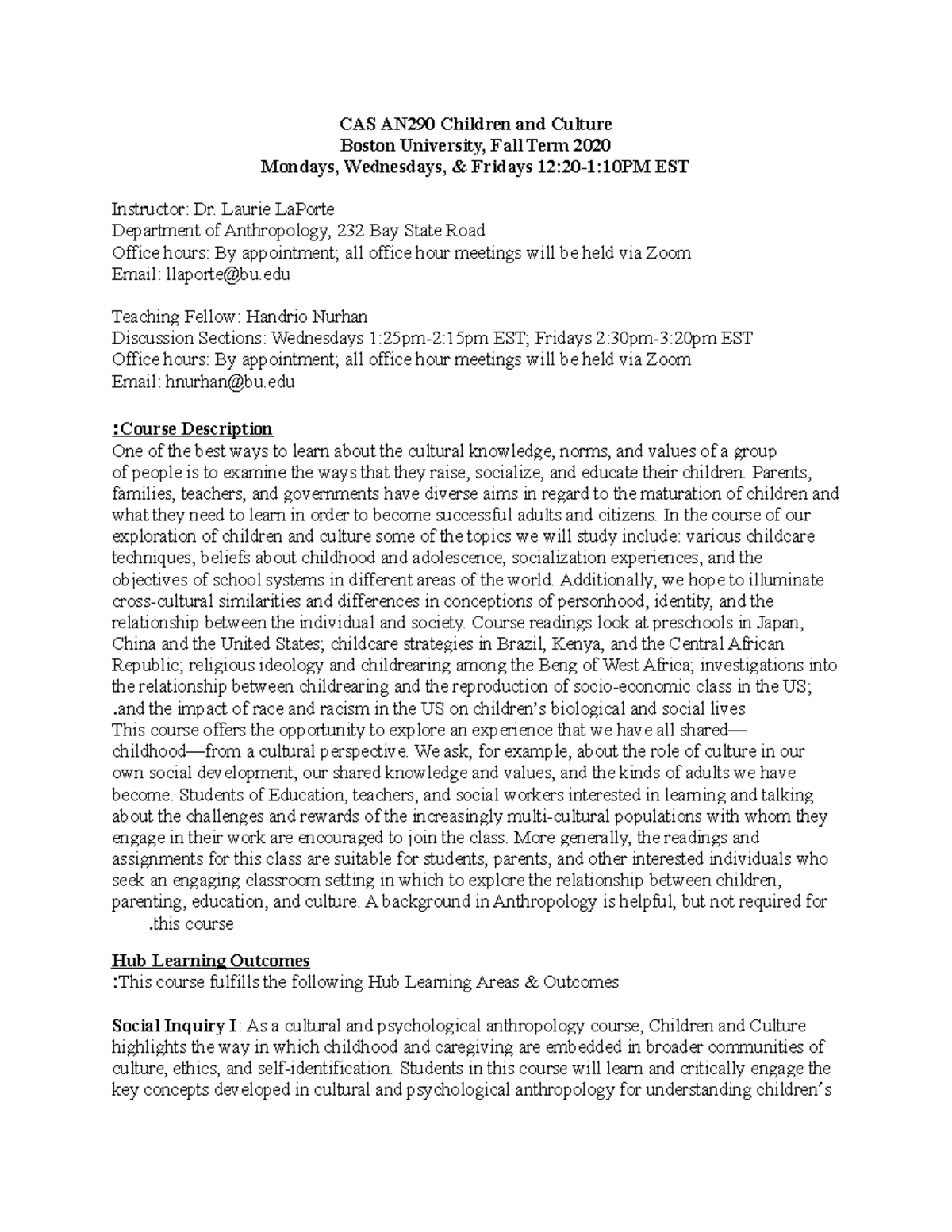 CAS AN290 syllabus CAS AN290 Children and Culture Boston University