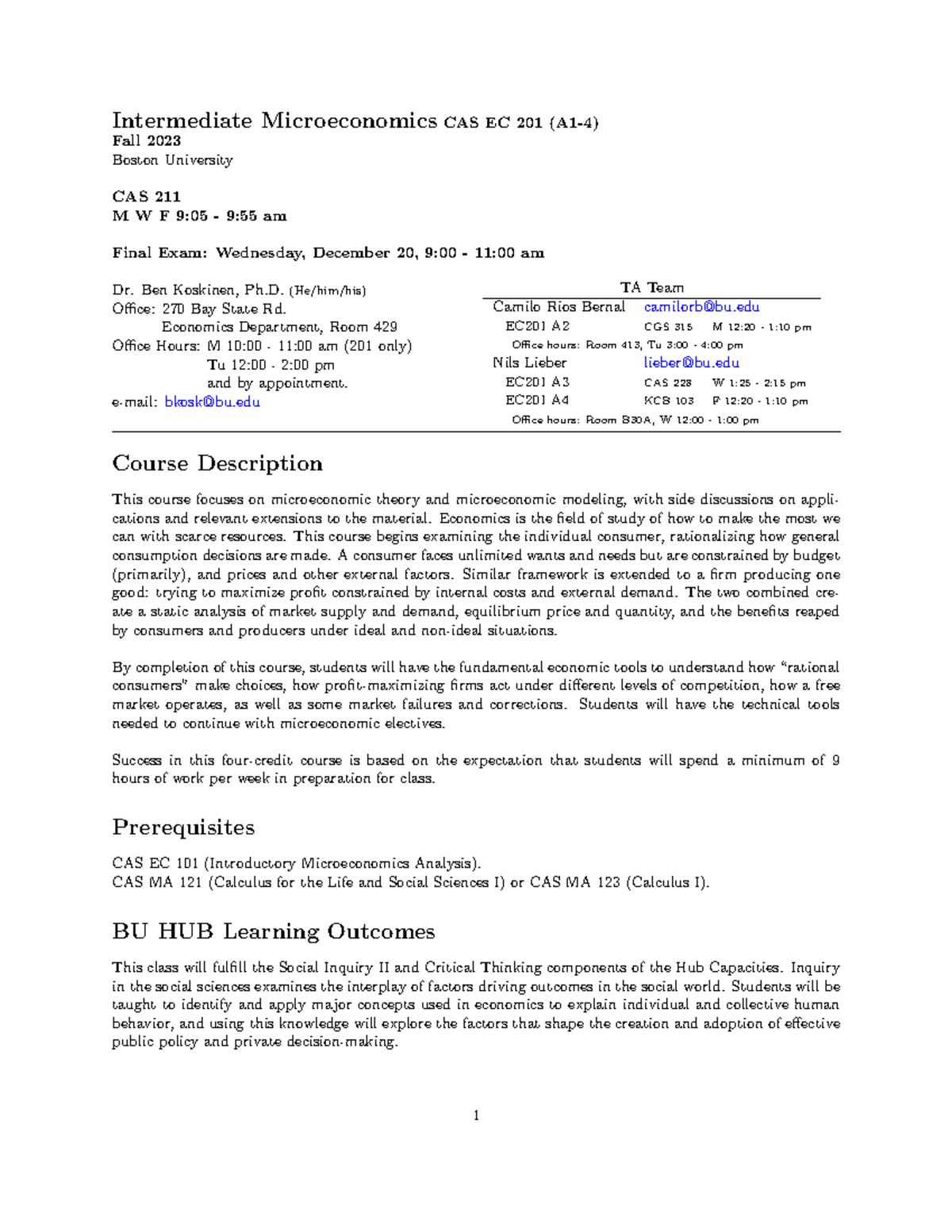 23Fa EC201A Syllabus Intermediate Microeconomics CAS EC 201 (A14