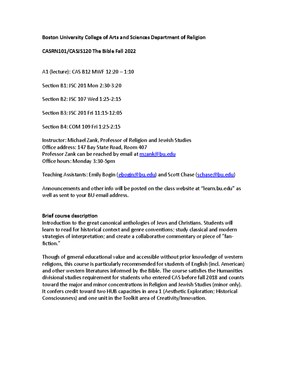 CAS RN 101 JS 120 The Bible Boston University College of Arts and