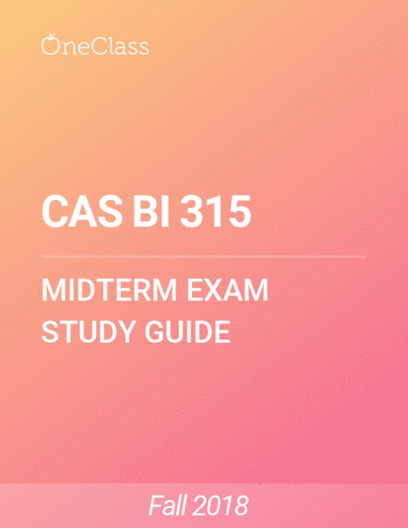 CAS BI 315 Study Guide Summer 2018, Comprehensive Midterm Notes