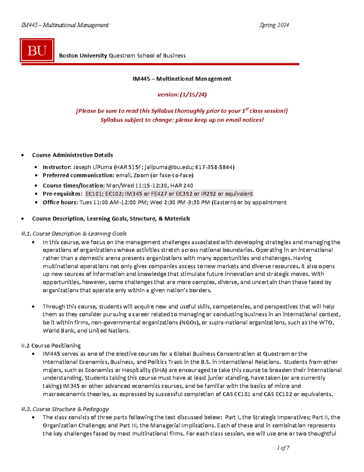 IM445 Syllabus COURSE MAT Boston University Questrom School of