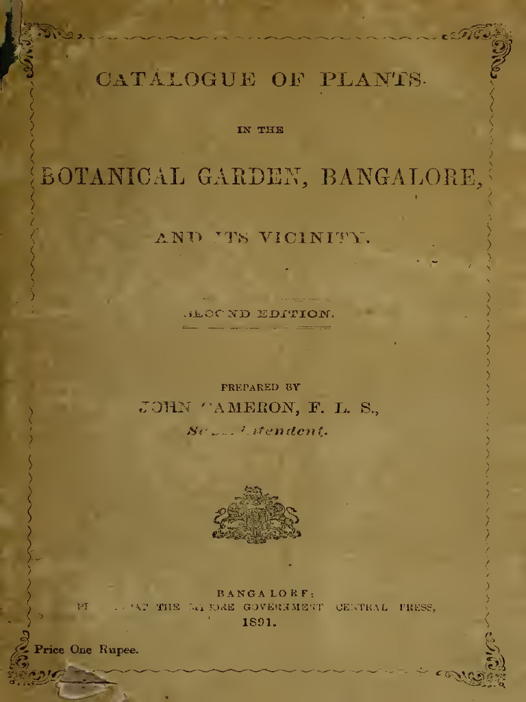 Catalogue of Plants in The Botanical Garden Bangalore and Its Vicinity