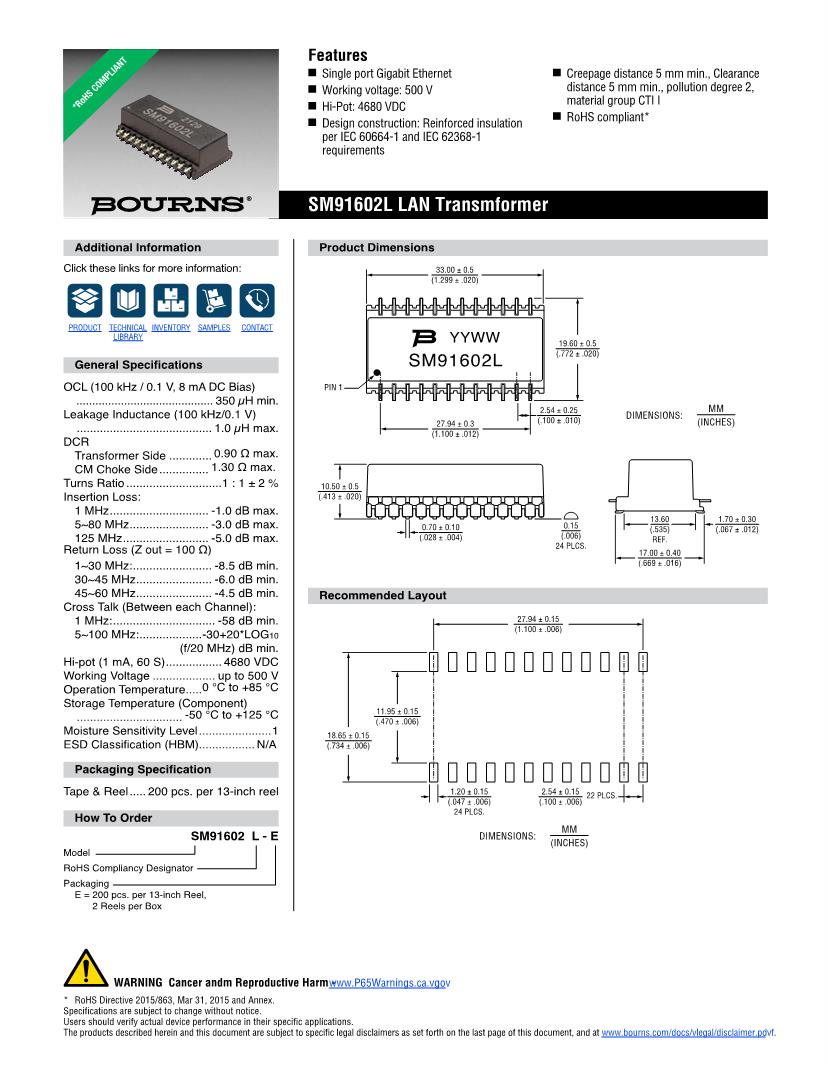 Bourns Power Datasheets Mouser