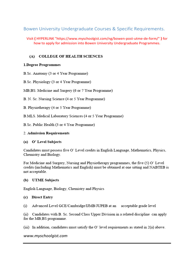 Bowen University COurses PDF Gce Advanced Level (United Kingdom