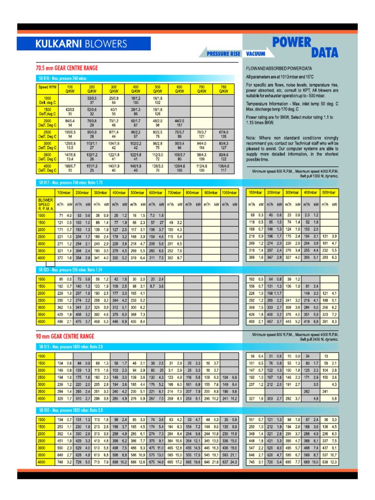 KPT Blower Catalog Models SR010 To SR035 PDF