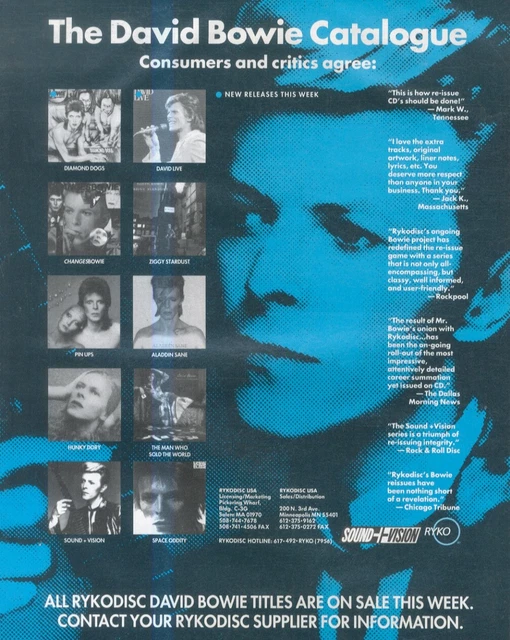 SFBK9 PICTURE/ADVERT 13X11 The David Bowie Catalogue £14.99 PicClick UK