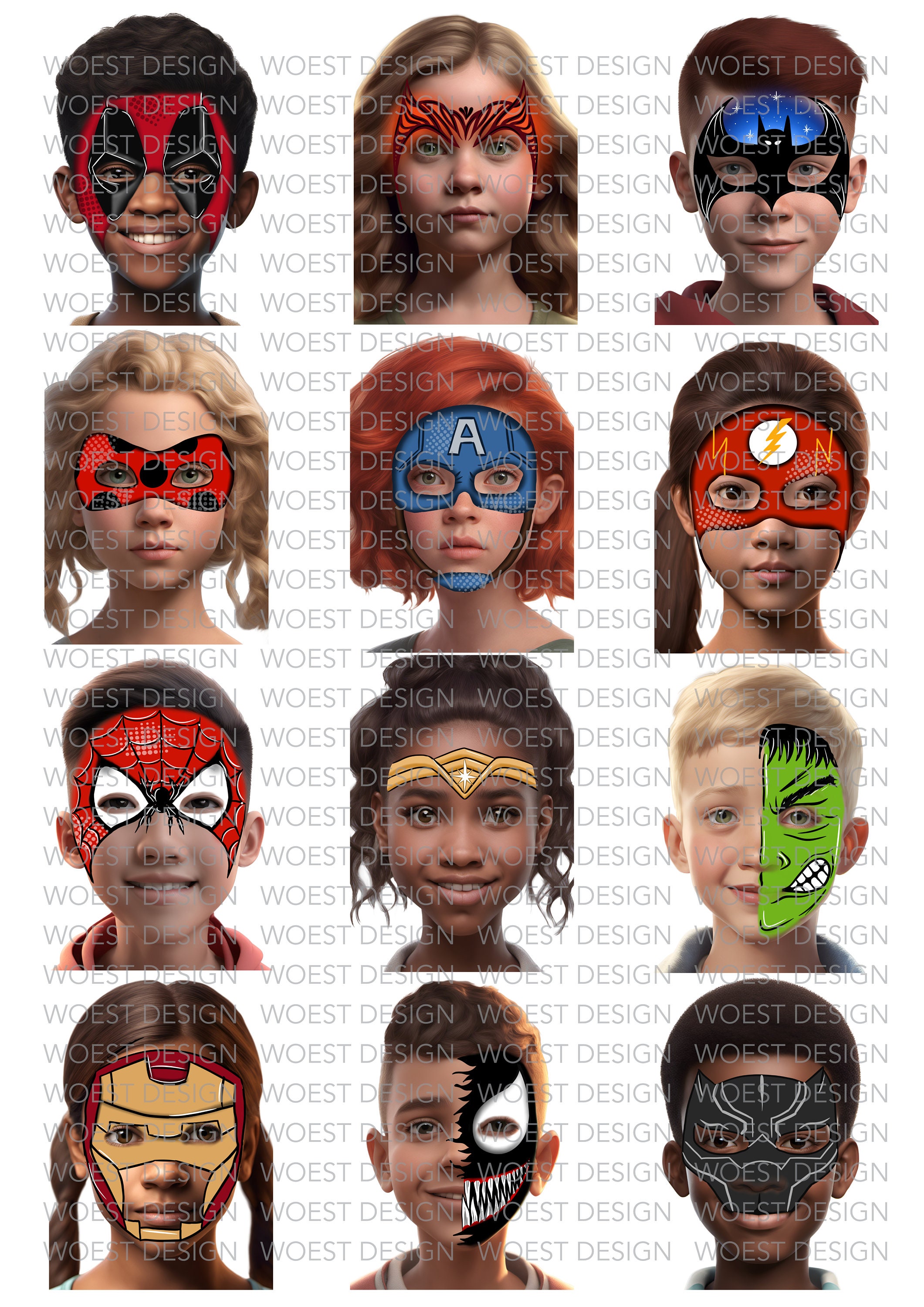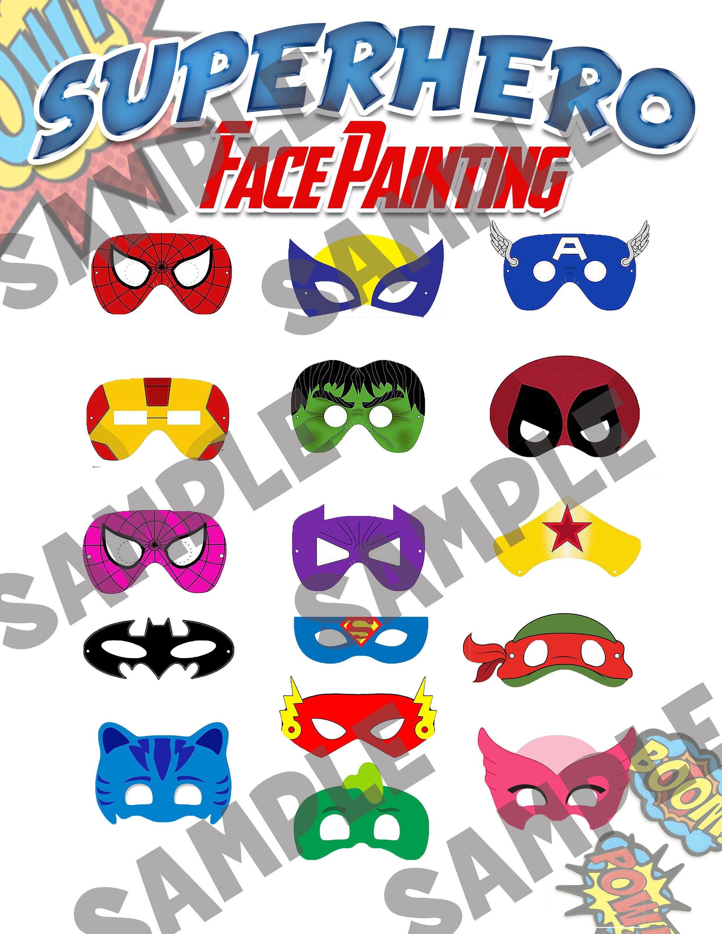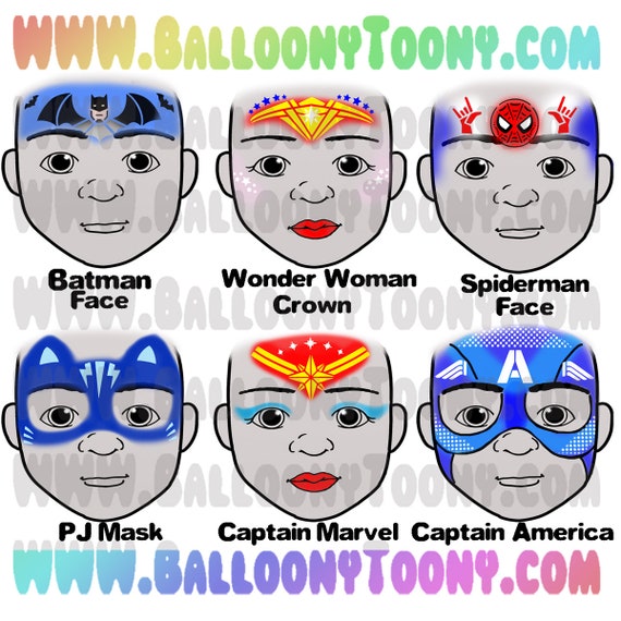 Super Hero Set DIGITAL DOWNLOAD Face Paint Painting Design Board