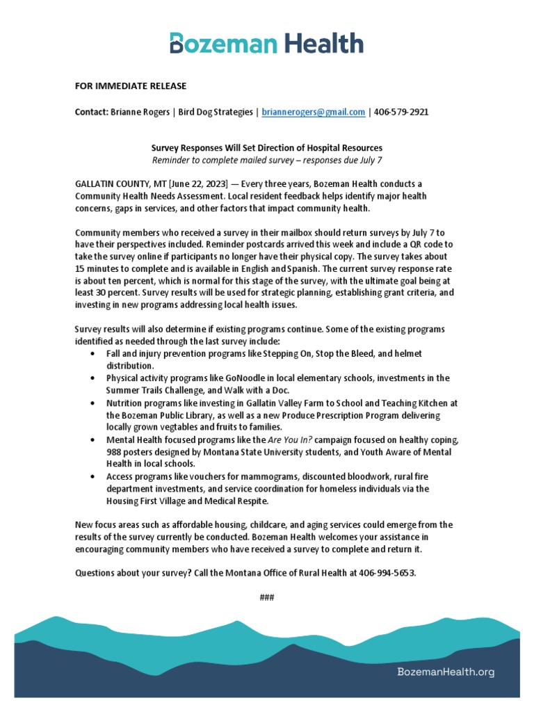 2023 0622 Press Release Bozeman Health CHNA Survey Reminder PDF
