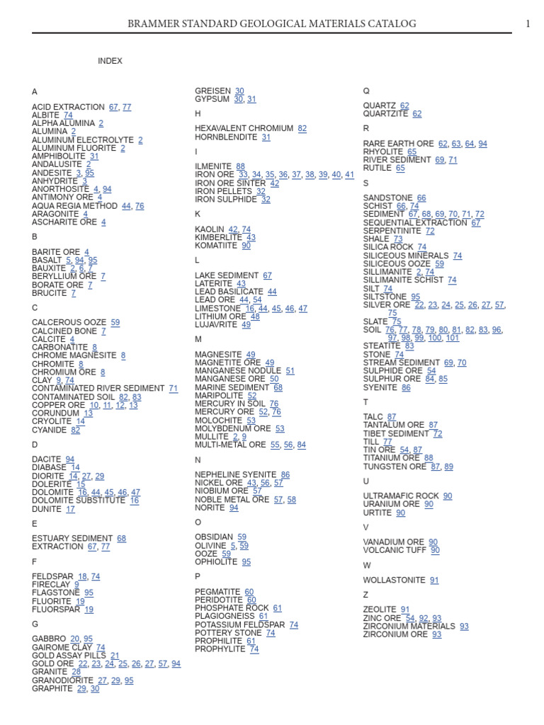 Brammer Standard Geological Materials Catalog PDF Ore Chemical