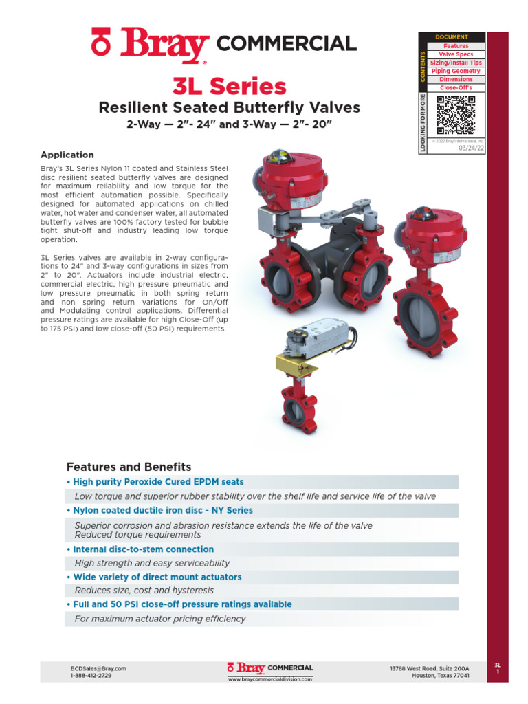 Bray 3L Series Resilient Seated Butterfly Valve Catalog PDF