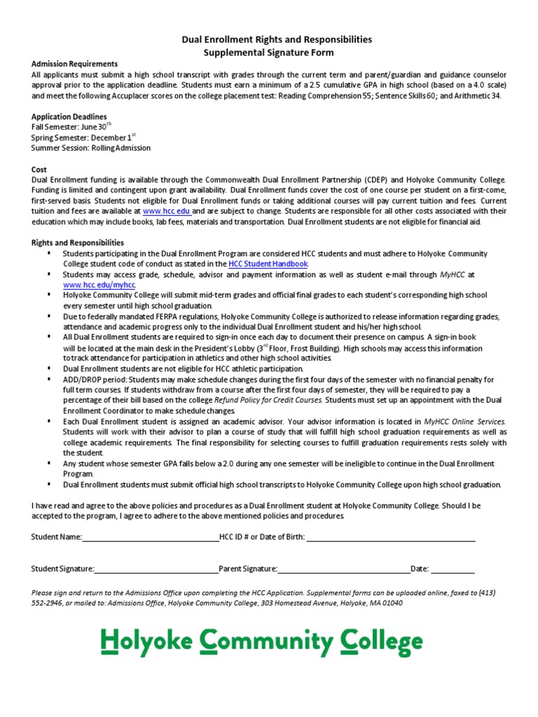 Dual Enrollment Rights and Responsibilities HCC PDF University And