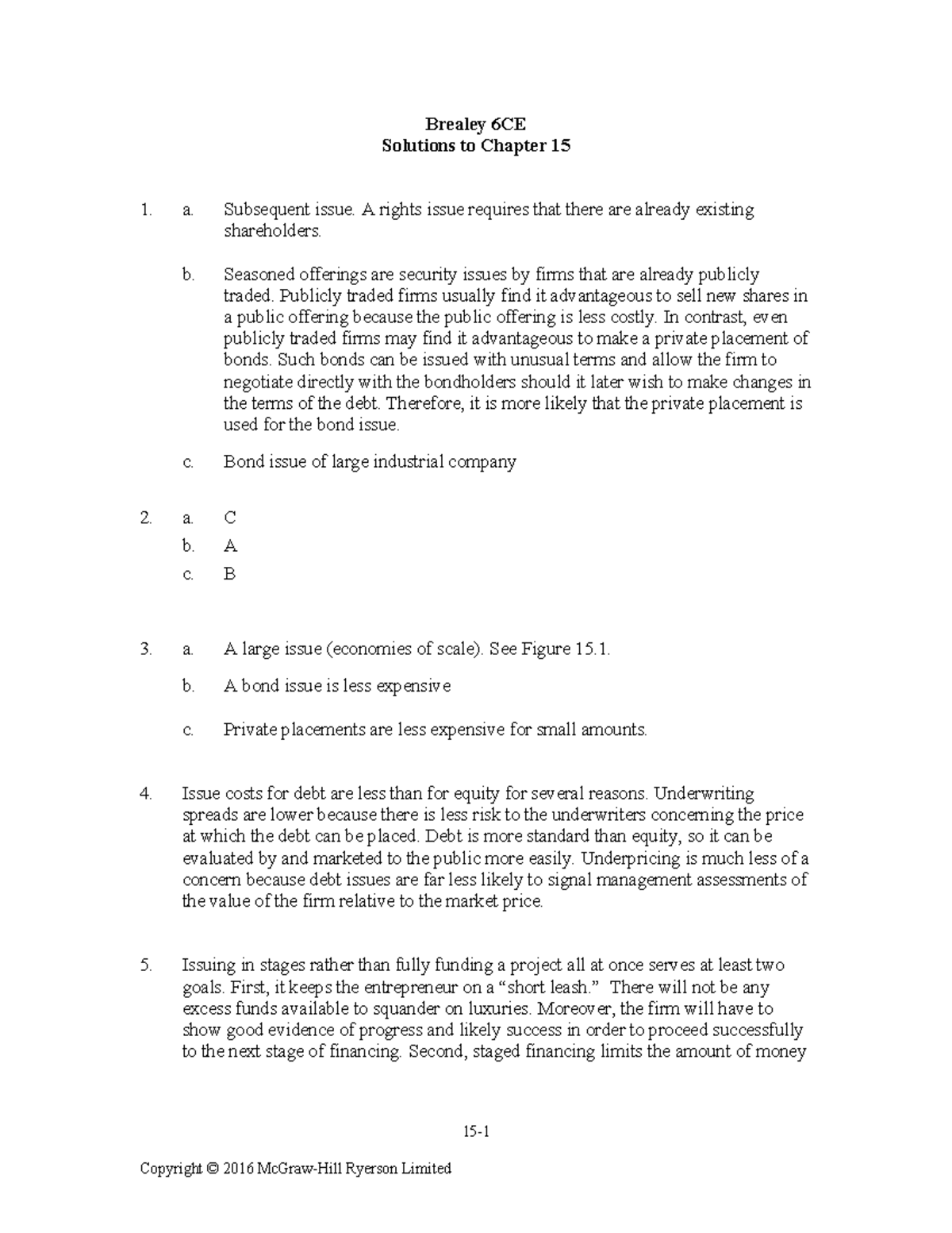Brealey 6CE Ch15 Solutions Brealey 6CE Solutions to Chapter 15 1. a