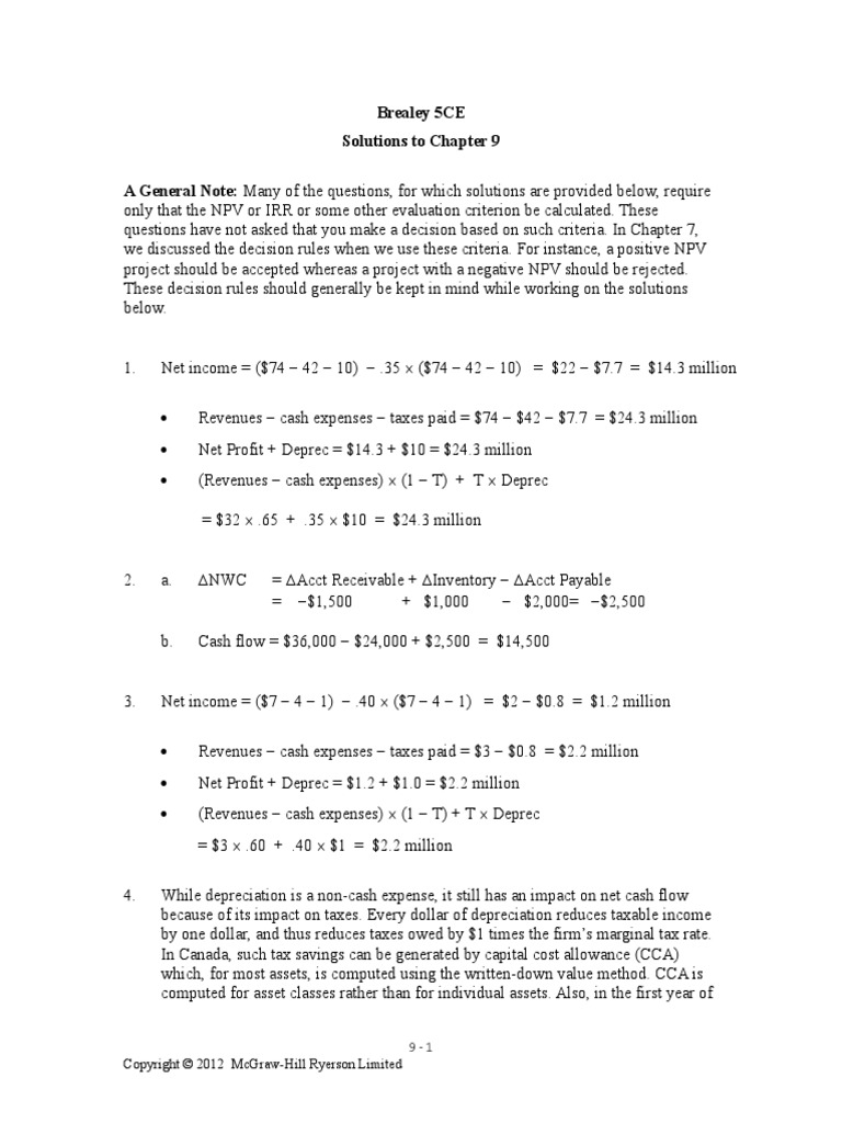 Brealey 5CE Ch09 Solutions PDF Net Present Value Depreciation
