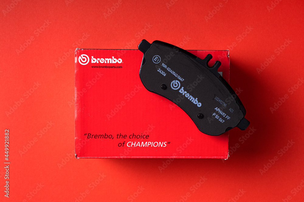 KHARKIV, UKRAINE 30 July 2021 Illustrative editorial of a new Brembo