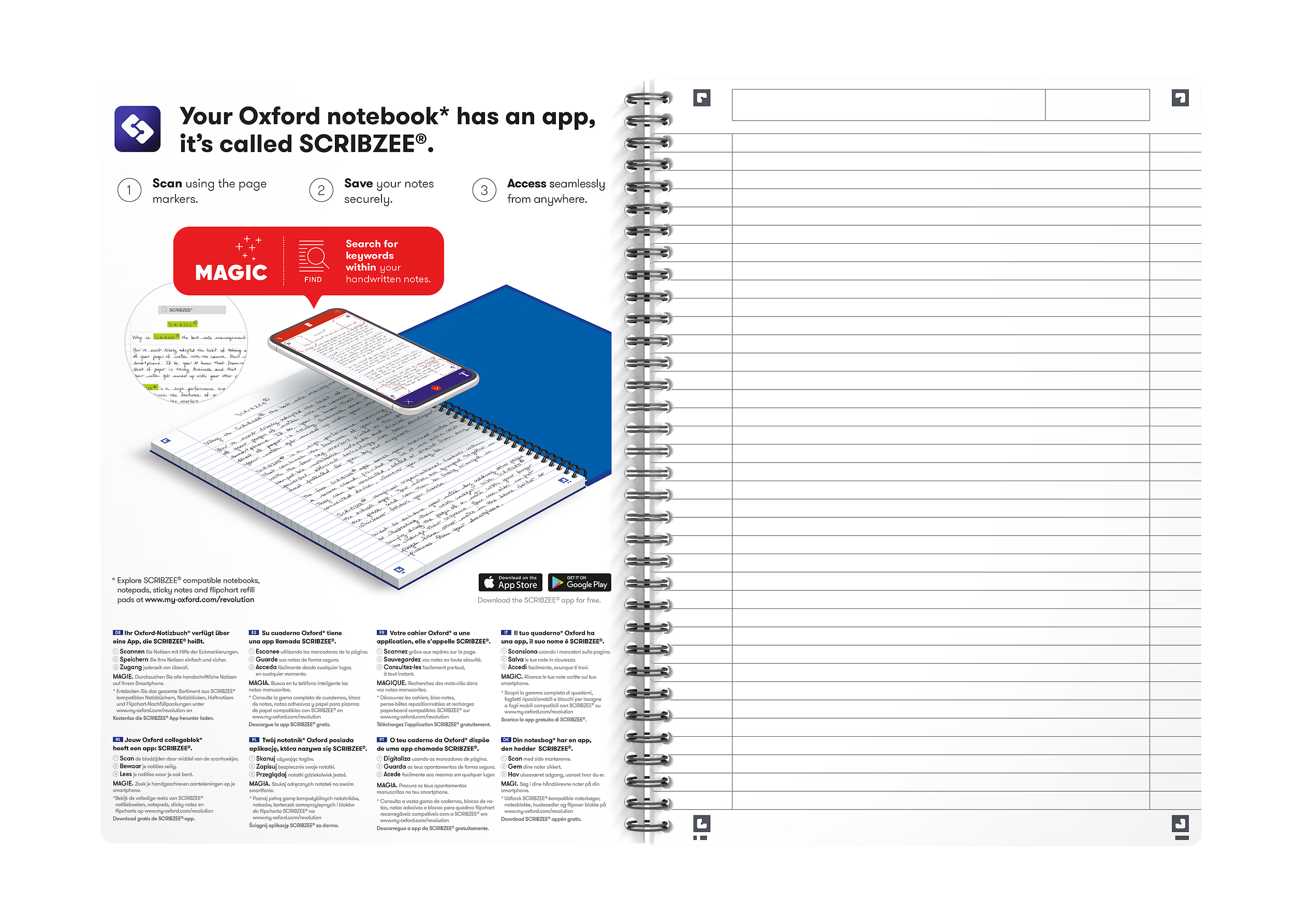 Cahier Oxford oceanis integrale 210x297 180p optik p. l7mm+tag polypro