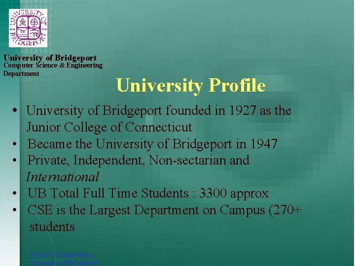 PPT School of Engineering University of Bridgeport Profile