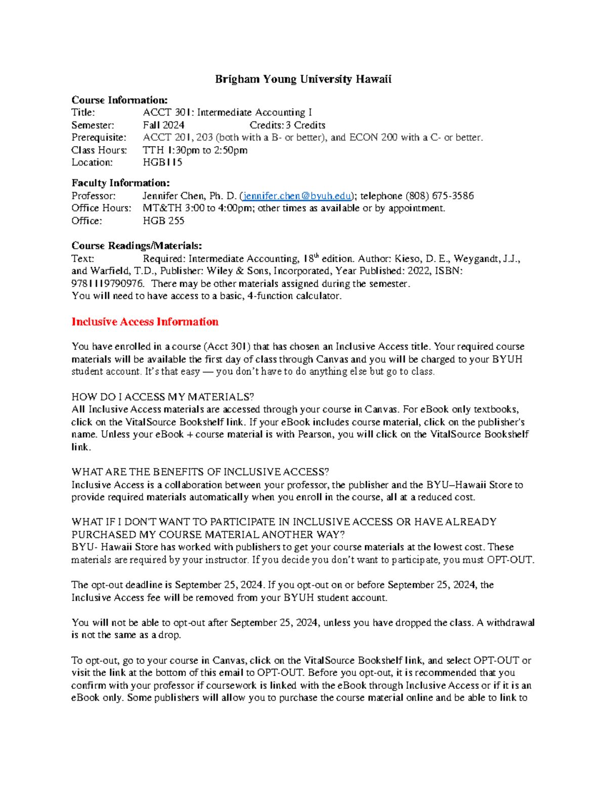 ACCT 301 Syllabus F 2024 Brigham Young University Hawaii Course